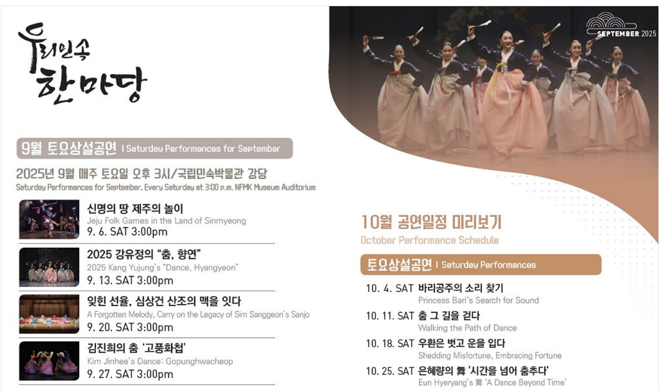 국립민속박물관에서는 윷놀이, 제기차기, 널뛰기 같은 민속놀이 마당이 열려 아이들에게는 새로운 경험, 어른들에게는 향수를 자극하는 시간이 될 거예요.