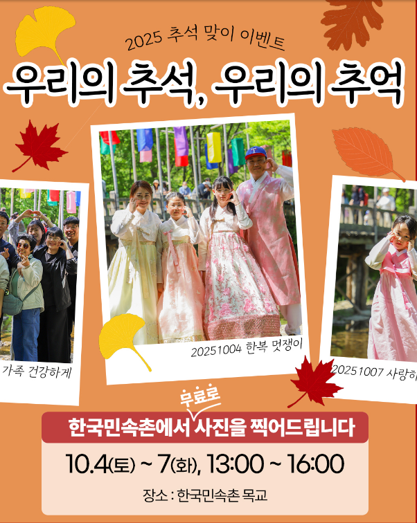 가족과 함께 전통문화를 체험하거나, 도심 나들이부터 지방 축제까지 즐기며 올해 추석 연휴를 특별하게 만들어보세요!